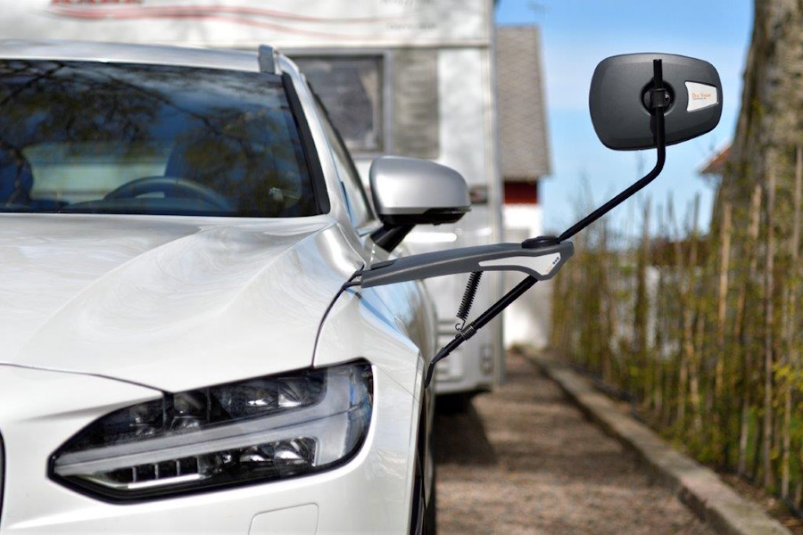 Voor optimaal zicht bij het rijden met een brede caravan: Volvo caravanspiegels worden op de voorschermen gemonteerd en bieden een helder en stabiel zicht naar achteren. Veiligheid en comfort, ook met aanhanger.