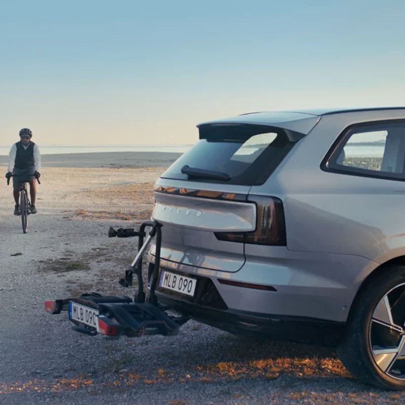 Op alle Volvo-fietsendragers voor op de trekhaak ontvangt u tijdens de actieperiode 15% korting. Dus ook op de opklapbare fietsendrager met Fix4Bike-bevestiging voor (twee elektrische) fietsen.